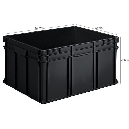 Caixa de norma europeia – Integral – Preta reciclada, Capacidade: 175 L, Empilhável: sim Caixa de norma europeia – Integral – Preta reciclada, Capacidade: 175 L, Empilhável: sim