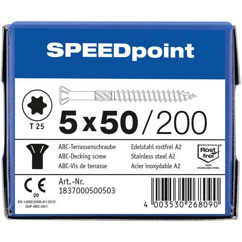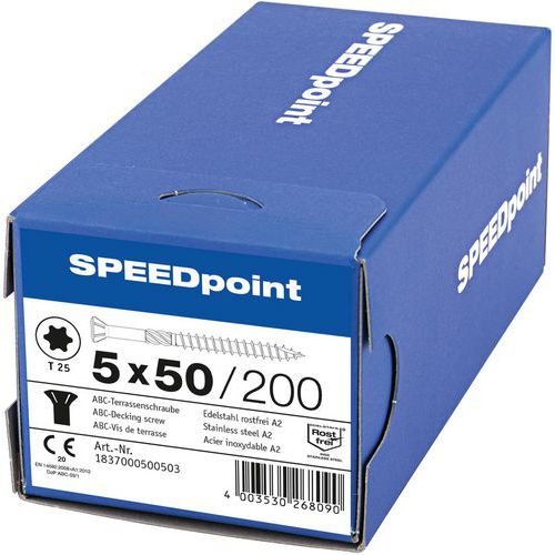 Caixa de parafusos de aço inoxidável A2 para terraço com cabeça abaulada TX Ø 5 mm - SpeedPoint