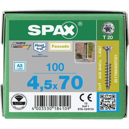 Caixa de parafusos de cabeça convexa pequenos TX de Ø 4,5 a 5 mm - Spax