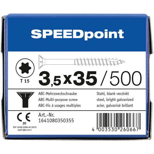 Caixa de parafusos multiusos com cabeça escareada TXØ de 3,5 a 5 mm - SpeedPoint