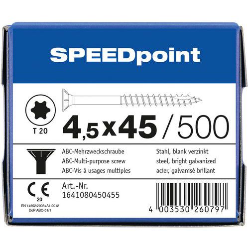 Caixa de parafusos multiusos com cabeça escareada TXØ de 3,5 a 5 mm - SpeedPoint