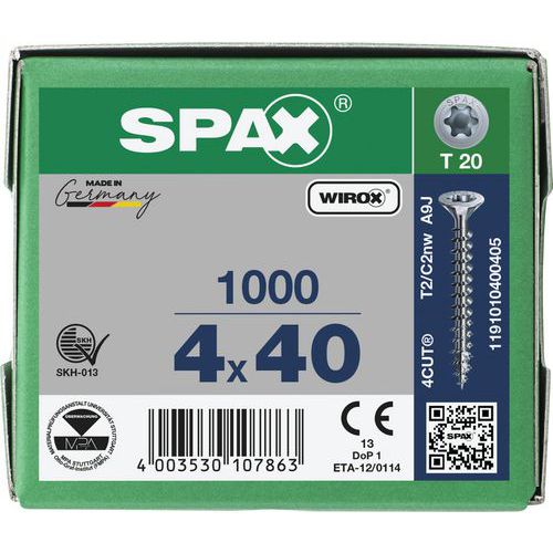 | Nome do artigo | Caixa de parafusos universais de cabeça escareada T-Star Plus TX Ø, Material: Aço, Roscagem Ø: 4 mm |