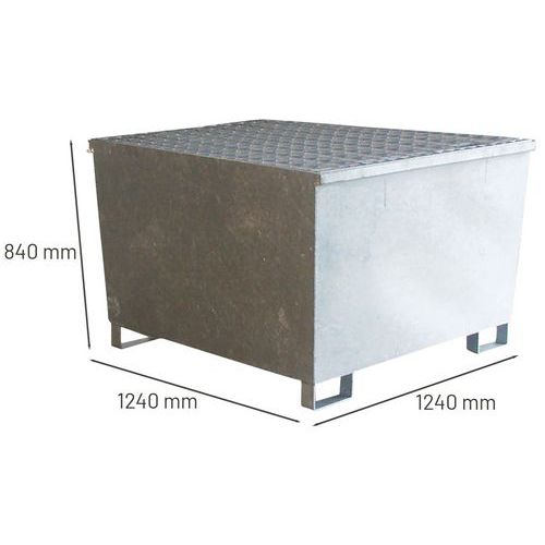 | Nome do artigo | Caixa de retenção em aço de 1050 L, Cap. (n.º de bidões): 4, Piso: sim, Cap. de retenção: 1050 L |