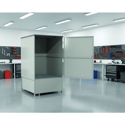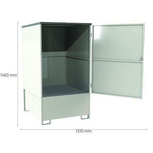 | Nome do artigo | Caixa de retenção metálica 1 GRG – 1000 L, Cap. de retenção: 1000 L, Cores: Branco, Piso: sim |