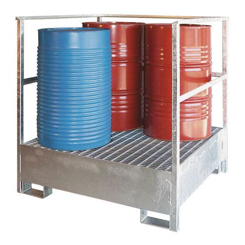 Caixa de retenção metálica vertical, Cap. (n.º de bidões): 4, Piso: sim, Cap. de retenção: 440 L Caixa de retenção metálica vertical, Cap. (n.º de bidões): 4, Piso: sim, Cap. de retenção: 440 L