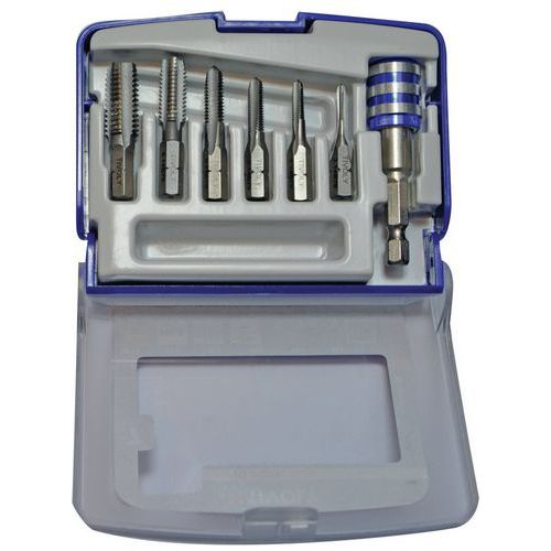 | Nome do artigo | Caixa de roscas HSS Shock Series – Tivoly, N.º de peças: 7, Material: Aço, Tipo de soporte: Plástico |