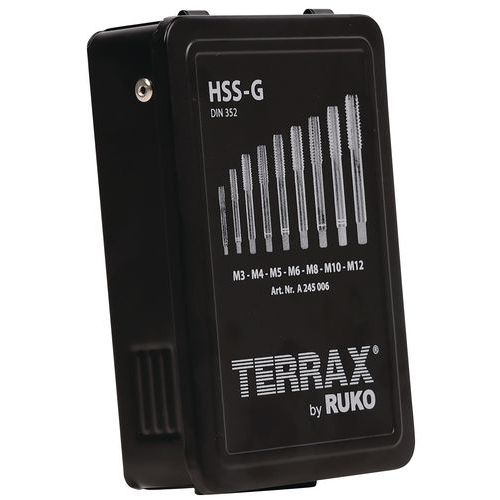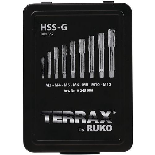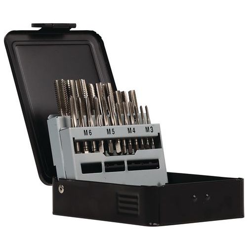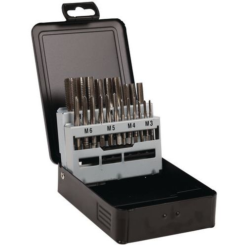 | Nome do artigo | Caixa de roscas manuais HSS de 21 peças M3-M12, Utilização: Perfuração, Material: Aço |