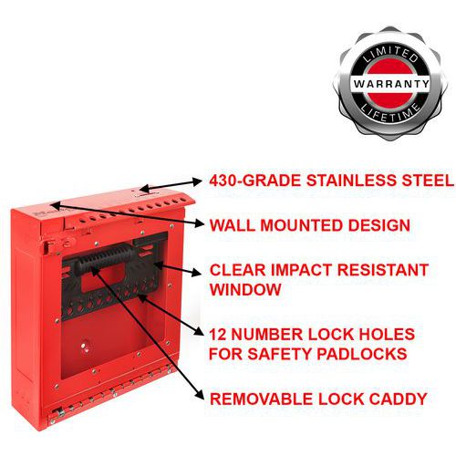 - Inclui também 12 orifícios exteriores para cadeados pessoais, mais um para um cadeado de controlo.