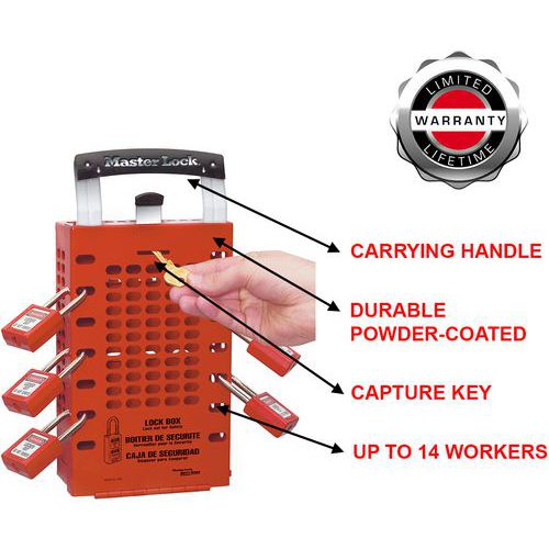| Nome do artigo | Caixa de segurança de grupo n.º 503, Largura: 89 mm, Comp.: 324 mm, Cores: Vermelho, N.º de peças: 1 |