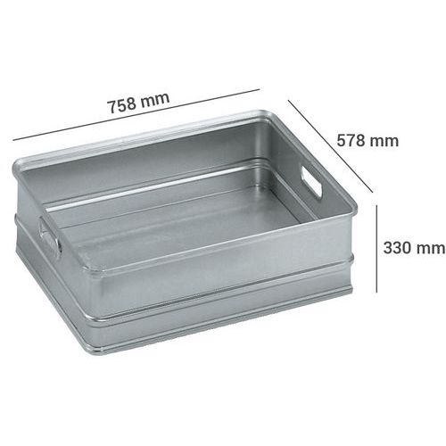 | Nome do artigo | Caixa de transporte em alumínio – 758 mm de comprimento – 77 a 155 L, Capacidade: 116 L, Altura total: 330 mm |