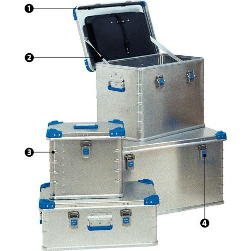 Caixa de transporte empilhável em alumínio de 27 a 240 L
