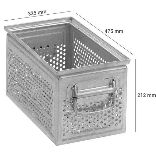 Caixa de transporte perfurada em aço – 315 a 630 mm de comprimento – 9,5 a 77 L