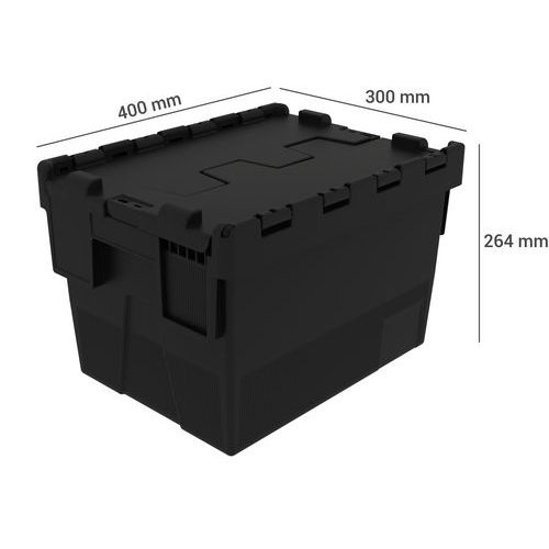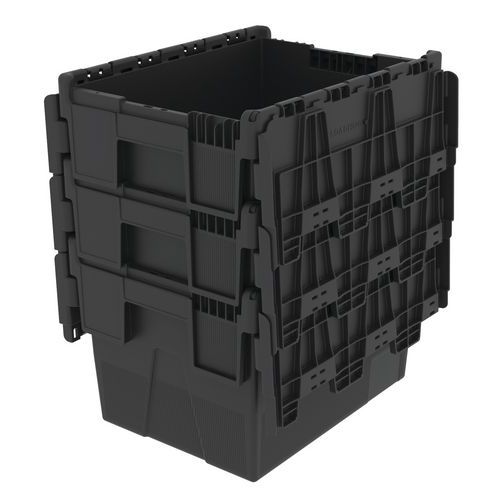 A caixa de transporte em plástico reciclado é perfeita, uma vez que é empilhável e encaixável, permitindo uma poupança de espaço significativa. Caixa de norma europeia paletizável que oferece uma grande estabilidade no empilhamento. Resistente às diferentes variações de temperatura. Prática: a tampa é amovível e rebatível. Fecho inviolável graças às abraçadeiras.