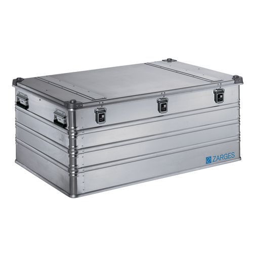 Caixa universal em alumínio extraforte, anticorrosivo e inalterável. Tampa com dobradiça em inox e junta contínua em espuma injetada. Elevada estabilidade com perfilados e juntas em alumínio totalmente soldadas. Elevada resistência de empilhamento e encaixe com cantos em alumínio fundido. O fecho ergonómico garante, no mínimo, 2 ciclos de acionamento. Proteção IP 53. Punhos caídos ergonómicos com mola, para cargas de até 5 kg. Chapa extremamente resistente com 1 mm de espessura (1,5 mm para o modelo 239 e 414 L). Fecho de pressão perfurado em 2 lados para sistema de segurança (fechadura, chumbos, mola antiabertura ou cadeado). Carga máx. (kg) : 183 kg