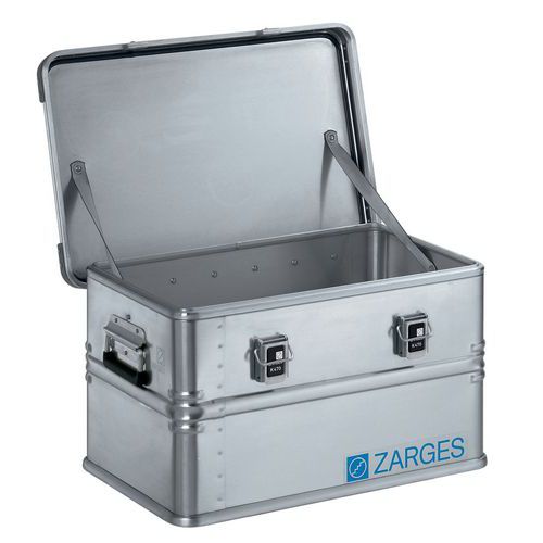 Caixa universal em alumínio extraforte, anticorrosivo e inalterável. Tampa com dobradiça em inox e junta contínua em espuma injetada. Elevada estabilidade com perfilados e juntas em alumínio totalmente soldadas. Elevada resistência de empilhamento e encaixe com cantos em alumínio fundido. O fecho ergonómico garante, no mínimo, 2 ciclos de acionamento. Proteção IP 53. Punhos caídos ergonómicos com mola, para cargas de até 5 kg. Chapa extremamente resistente com 1 mm de espessura (1,5 mm para o modelo 239 e 414 L). Fecho de pressão perfurado em 2 lados para sistema de segurança (fechadura, chumbos, mola antiabertura ou cadeado). Carga máx. (kg) : 183 kg