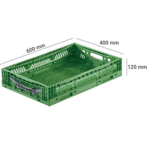 Caixa dobrável – 400 a 600 mm de comprimento – 14 a 45 L, Capacidade: 23 L, Altura total: 120 mm