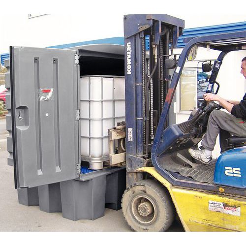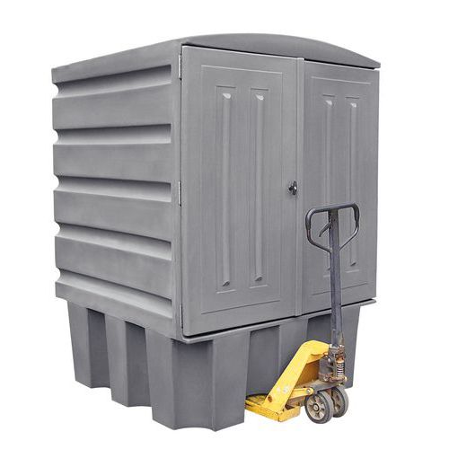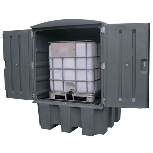 | Nome do artigo | Caixa em PEAD 1100 L – EMP, Cap. de retenção: 1100 L, Cap. (n.º de bidões): 4, Capacidade (n.º de GRV): 1 |
