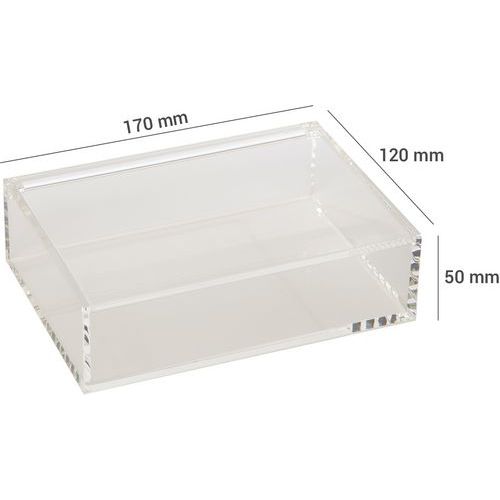 Caixa em plexiglas – Comprimento de 127 a 250 mm, Capacidade: 0.7 L, Encaixável: não, Altura total: 50 mm