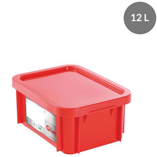 Caixa empilhável com tampa – 395 mm de comprimento – 12 a 15 L – Gilac, Capacidade: 12 L Caixa empilhável com tampa – 395 mm de comprimento – 12 a 15 L – Gilac, Capacidade: 12 L