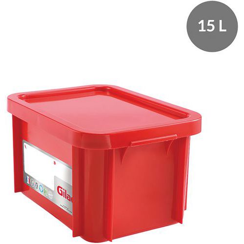 Caixa empilhável com tampa – 395 mm de comprimento – 12 a 15 L – Gilac, Capacidade: 15 L Caixa empilhável com tampa – 395 mm de comprimento – 12 a 15 L – Gilac, Capacidade: 15 L