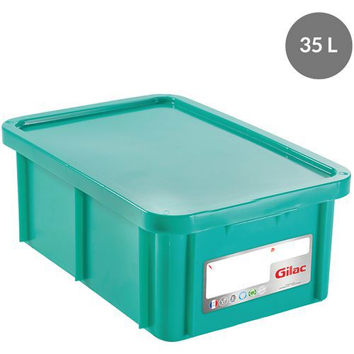 Caixa empilhável com tampa – 595 mm de comprimento – 35 a 55 L – Gilac, Capacidade: 35 L Caixa empilhável com tampa – 595 mm de comprimento – 35 a 55 L – Gilac, Capacidade: 35 L
