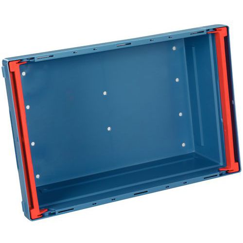 - Caixa com asas de empilhamento amovíveis compatível com as paletes de norma europeia.