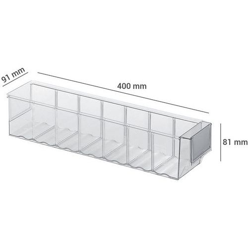Caixa-gaveta de arrumação – 400 mm de comprimento – 2,1 a 10,1 L, Capacidade: 2.1 L, Altura total: 81 mm