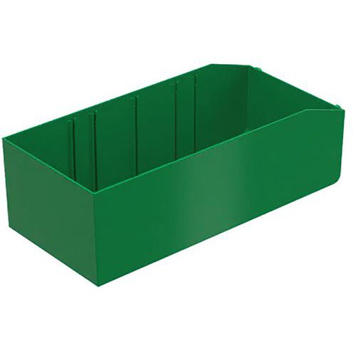 Caixa-gaveta robusta. Caixa-gaveta compartimentável. Abertura na frente para uma melhor visualização do conteúdo. Paredes e fundo lisos. Boa resistência aos ácidos. Fabricado na Alemanha