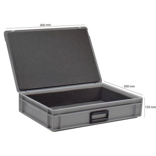 | Nome do artigo | Caixa-maleta Rako com tampa – interior em espuma – C. 300 mm – UTZ, Capacidade: 5 L, Altura total: 125 mm |