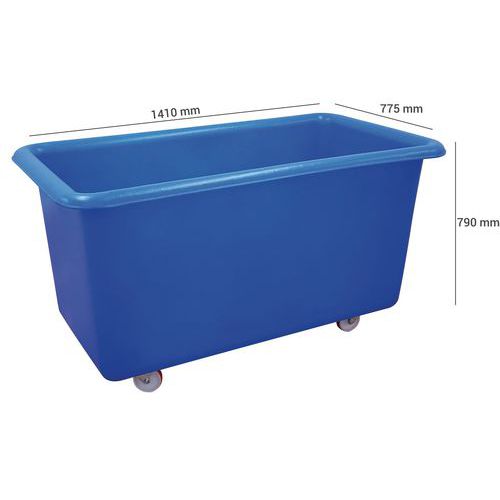 | Nome do artigo | Caixa móvel para cargas pesadas – 1410 mm de comprimento – 455 L, Capacidade: 455 L, Altura total: 790 mm |