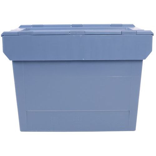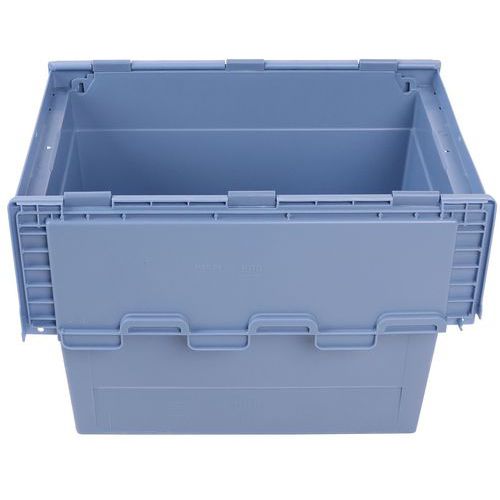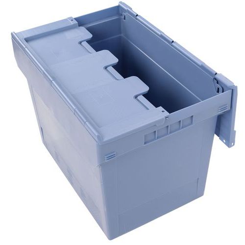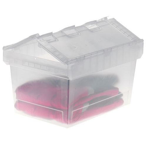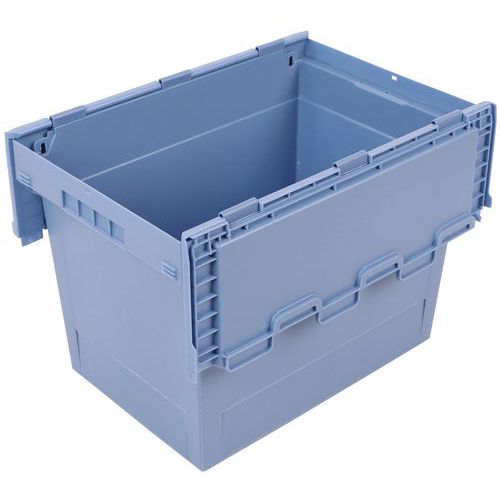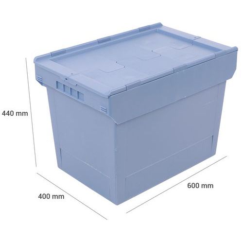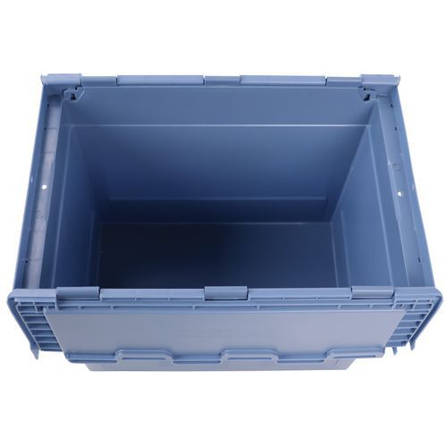 Empilhável e encaixável para a máxima poupança de espaço. Dimensões normalizadas de acordo com a norma europeia, ideais para o transporte. Redução das embalagens graças à tampa rebatível integrada. Paredes interiores lisas para uma utilização ideal do volume. Disponível em 4 formatos.