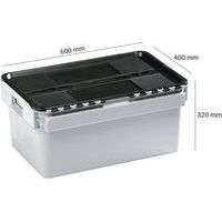 | Nome do artigo | Caixa padrão com tampa integrada – 400 mm de comprimento – 45 a 60 L, Capacidade: 52 L, Altura total: 320 mm |