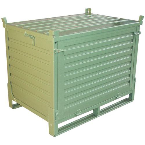 Estrutura em aço muito resistente para uma utilização intensiva. Dobrável, permite economizar espaço durante o armazenamento e transporte. Pode ser tapada com a tampa vendida em conjunto e trancada com um cadeado.