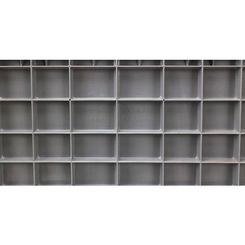 Plástico ultrarresistente a produtos químicos e a cortes. Paredes e fundo integrais para uma retenção perfeita dos líquidos. Modelo empilhável, mesmo com pé ou tampa. Caixa de recolha de grande estabilidade assente em 4 pés sólidos.