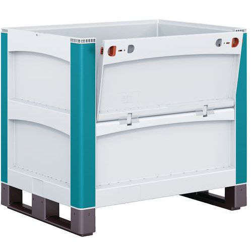Caixa-palete SL86 - Paredes integrais - Com sapatas - 1 face longitudinal rebatível