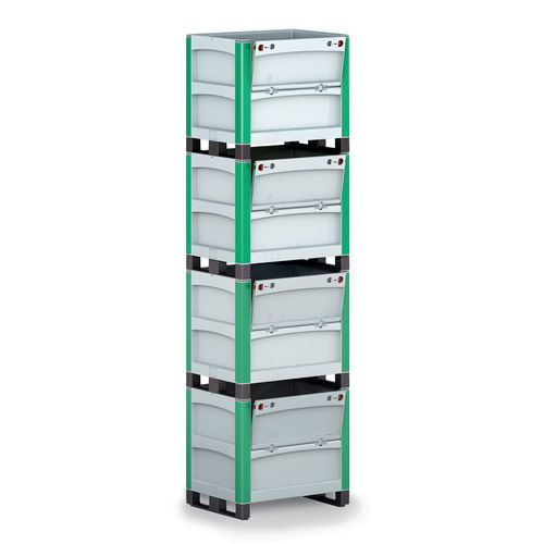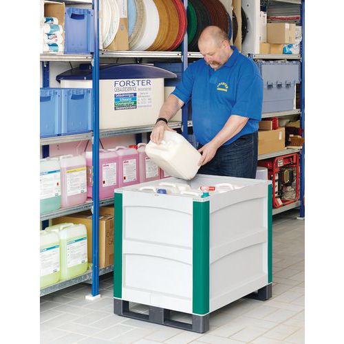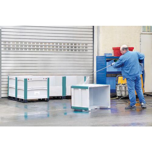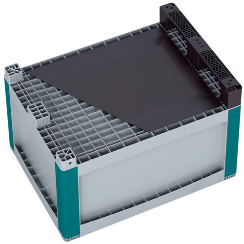 | Nome do artigo | Caixa-palete SL86 - Paredes integrais - Com sapatas - Tampa de 2 abas rebatível |