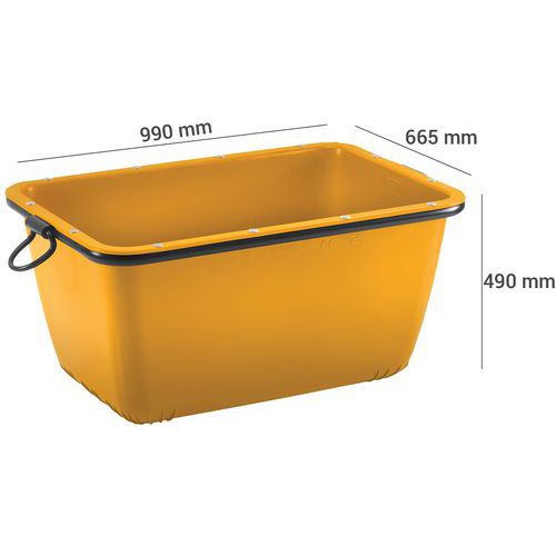 | Nome do artigo | Caixa para argamassa – 200 L, Capacidade: 200 L, Altura total: 490 mm, Largura total: 665 mm |