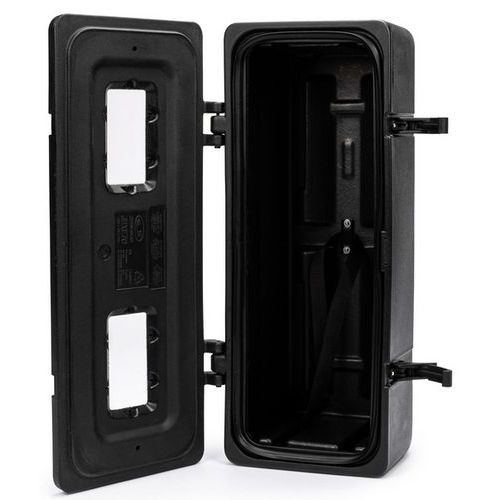 | Nome do artigo | Caixa para extintor – colocação pela parte frontal – série 70 – Jonesco, Material: Polietileno, Cores: Preto |