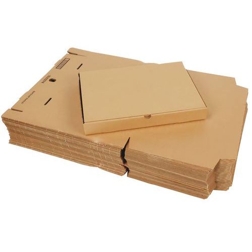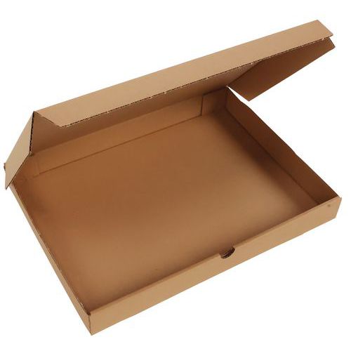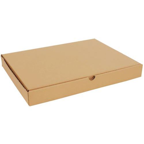 Caixa de expedição sólida em cartão kraft havane. Estrutura especialmente adaptada aos formatos planos.