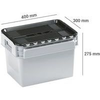 | Nome do artigo | Caixa standard com tampa integrada, Capacidade: 20 L, Altura total: 275 mm, Largura total: 300 mm |