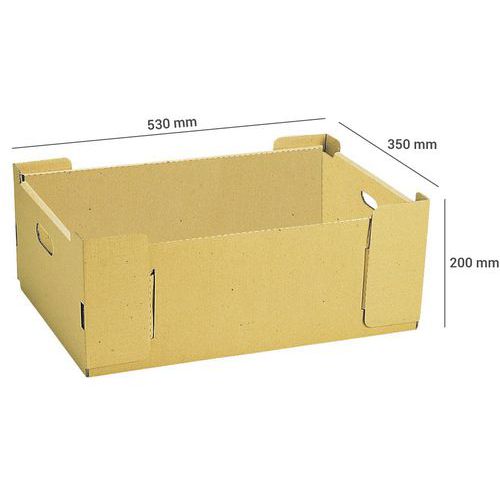 | Nome do artigo | Caixas empilháveis em cartão – 530 mm de comprimento – 25 L, Capacidade: 25 L, Altura total: 200 mm |