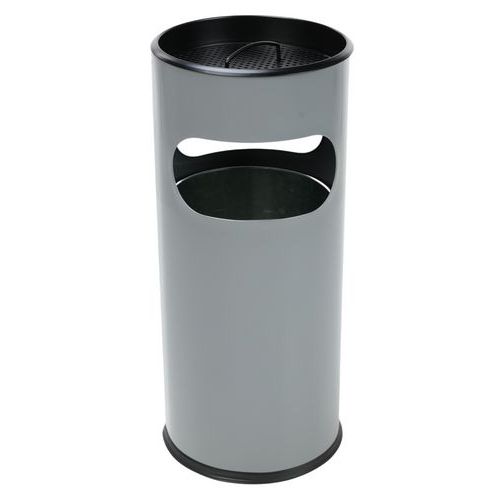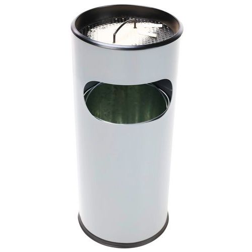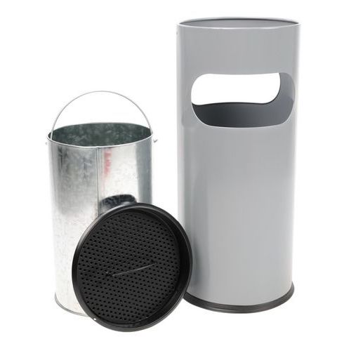 Caixote de lixo/cinzeiro antifogo, redondo, com invólucro em metal.