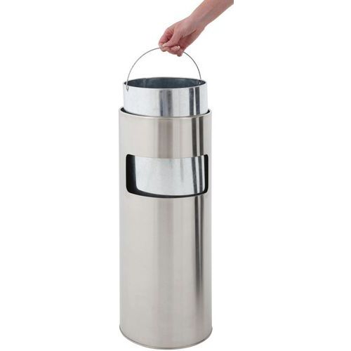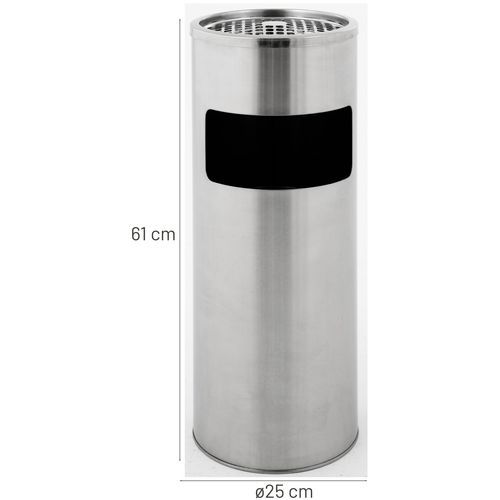 | Nome do artigo | Caixote de lixo com cinzeiro redondo – inox – 12,5 L, Cinzeiro cap.: 4 L, Caixote de lixo cap.: 12.5 L |
