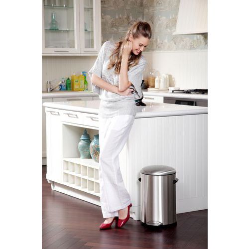 O design retro elegante confere um toque vintage ao seu espaço interior. Sistema de abertura com pedal, para uma utilização higiénica e sem esforço. As pegas ergonómicas facilitam a deslocação e o esvaziamento do caixote de lixo. Tampa arredondada equipada com fecho amortecido para um funcionamento silencioso. O revestimento interior amovível em plástico garante uma limpeza rápida e prática.