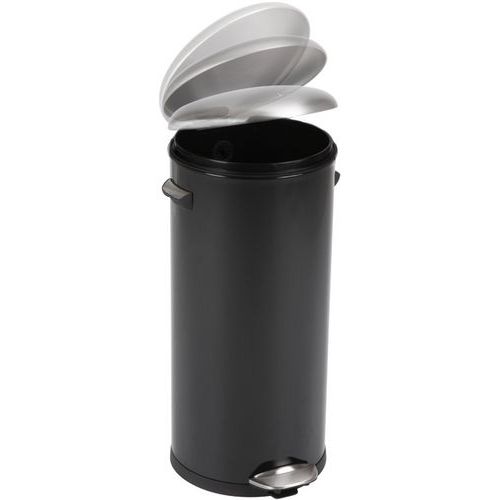 Caixote de lixo com pedal Look Retro equipado com pegas de design com tampa arredondada. Invólucro em plástico e fecho silencioso.