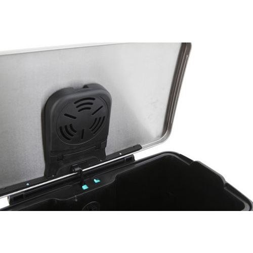 Compartimento dentro da tampa para um filtro de carvão antiodores (não incluído).