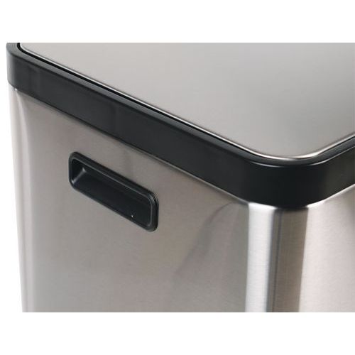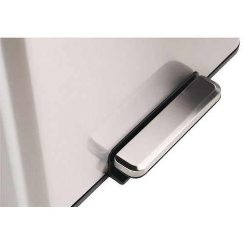 Caixote do lixo com pedal retangular em inox escovado com revestimento que protege contra as marcas de dedos e pegas práticas sintéticas.