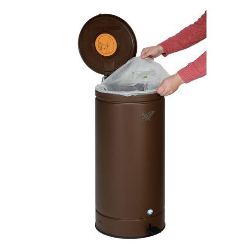 | Nome do artigo | Caixote de lixo com pedal GVA – 66 L – castanho – VAR, Capacidade: 66 L, Abertura: Com pedal, Material: Metal |