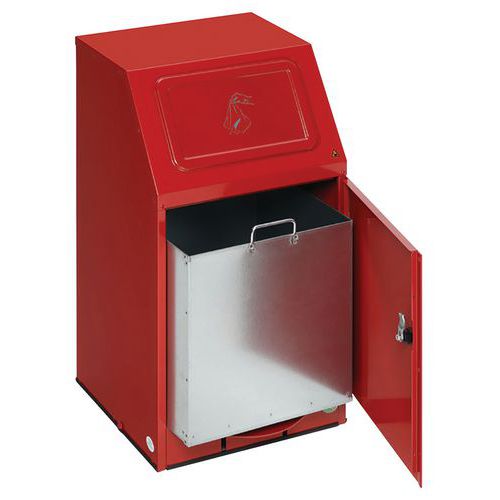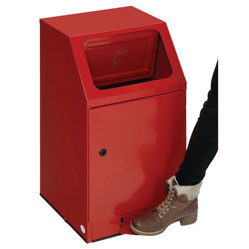 | Nome do artigo | Caixote de lixo em aço vermelho com pedal PWK 45 – Var, Capacidade: 43 L, Abertura: Com pedal |