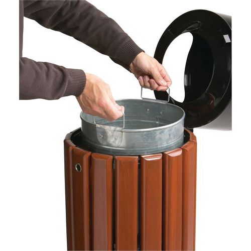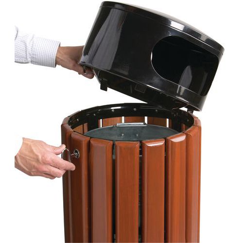| Nome do artigo | Caixote de lixo em metal e madeira – 40 L, Capacidade: 40 L, N.º de sacolas: 1, Abertura: Slotted |